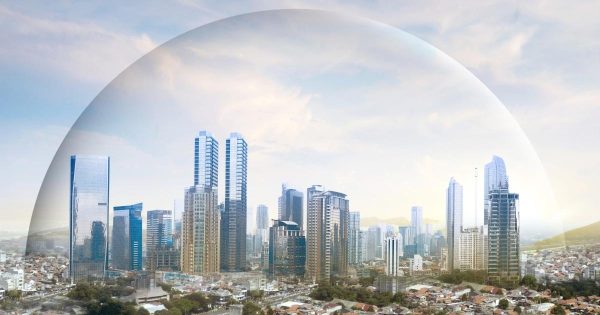 Estruturas infláveis em forma de bolha criam ambientes isolados e reduzem impactos no entorno das obras